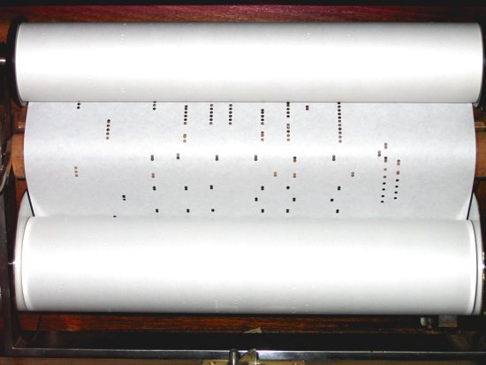 Une machine à perforer sophistiquée permet de recopier presque tous les anciens rouleaux de papier pour les instruments de musique mécanique jusqu'à une largeur de 360 mm.